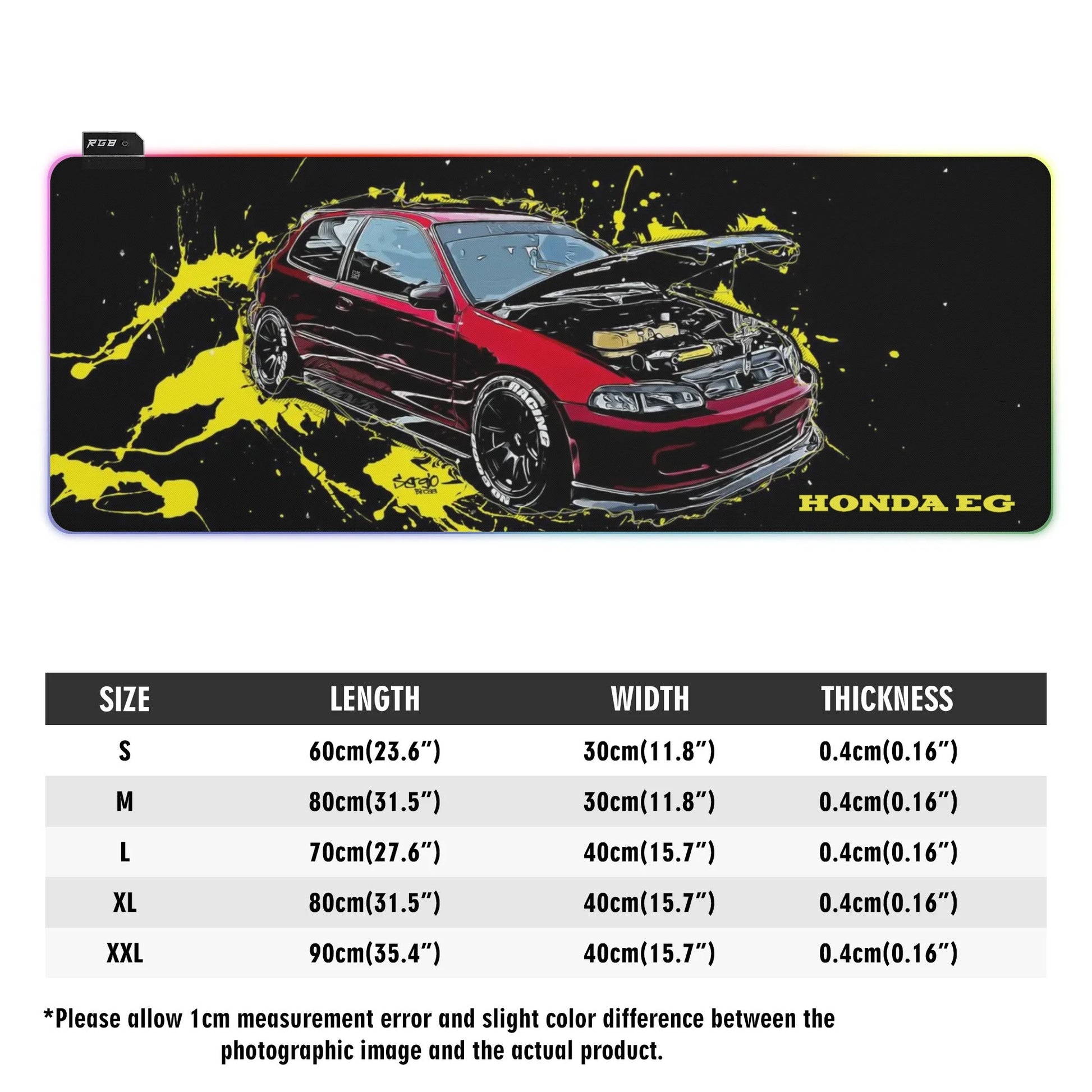Honda EG Rubber Gaming Mousepad Transparent LED RGB Keyboard Pad